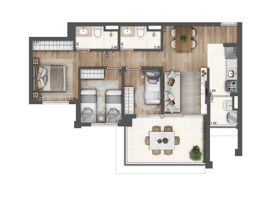 - 3 suítes